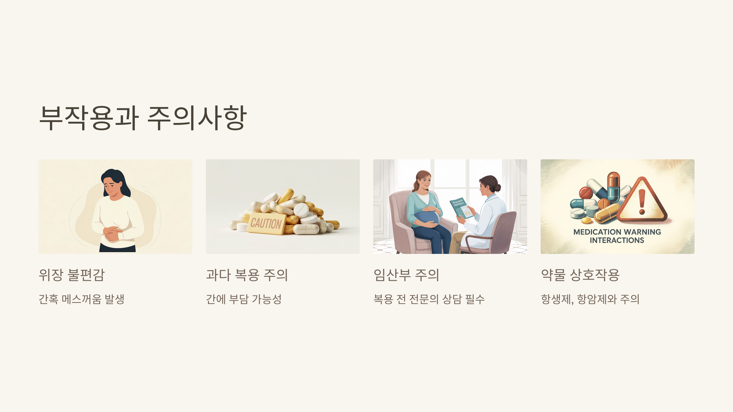 과다 복용은 오히려 간에 부담이 될 수 있고, 신장질환자나 임산부는 복용 전 꼭 상담을 받아야 해요.