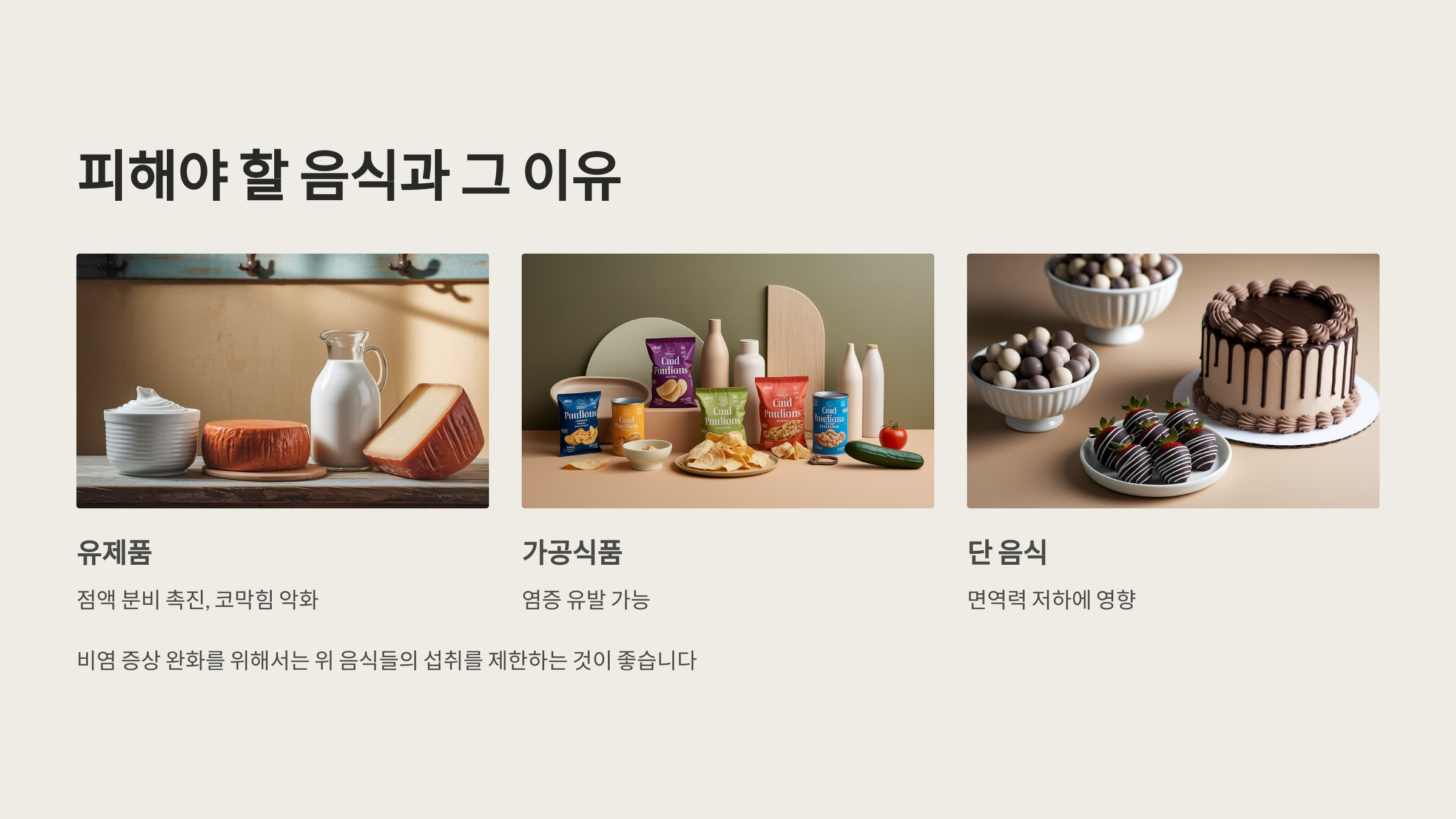 - 피해야 할 음식과 그 이유