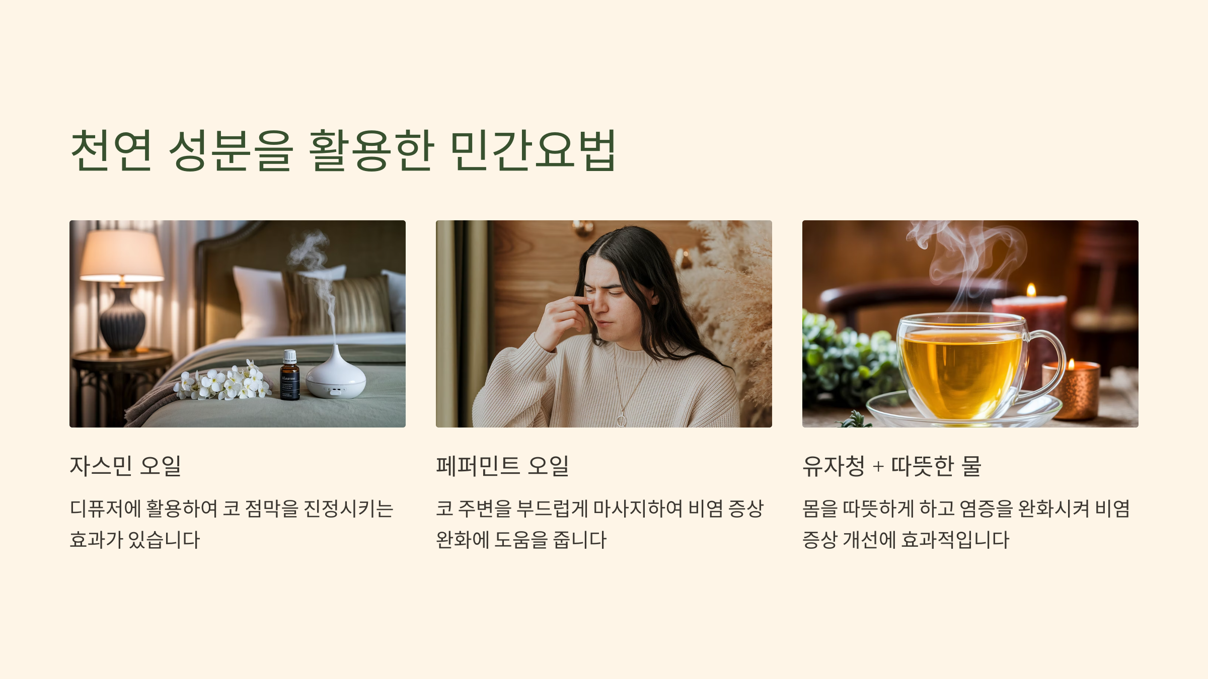 요즘은 정말 “비염과의 싸움”이 일상이었는데, 자연적인 방법들로 하나둘 개선되다 보니 삶의 질도 확 달라졌어요.